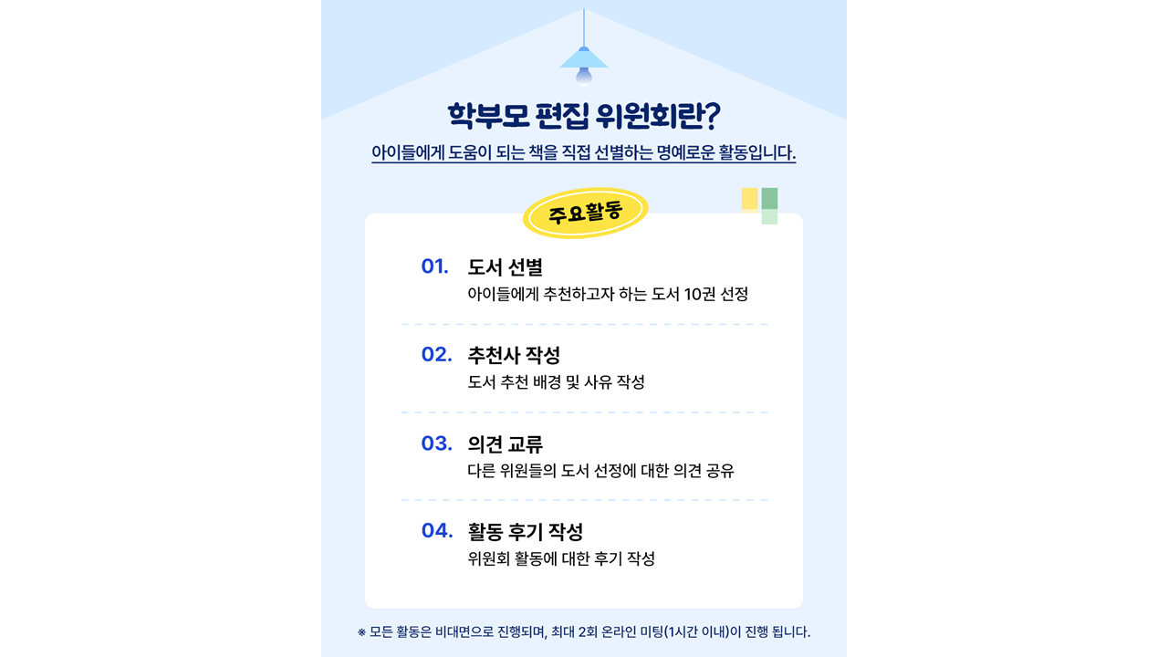 최근에는 부모의 이런 역할을 제도적으로 담아내려는 시도도 생겼습니다. 아이스크림 홈런에서 운영하는 ‘학부모 편집위원회’가 그중 하나입니다. 학부모가 직접 도서를 읽고 아이에게 추천할 책을 선정하는 활동인데요.