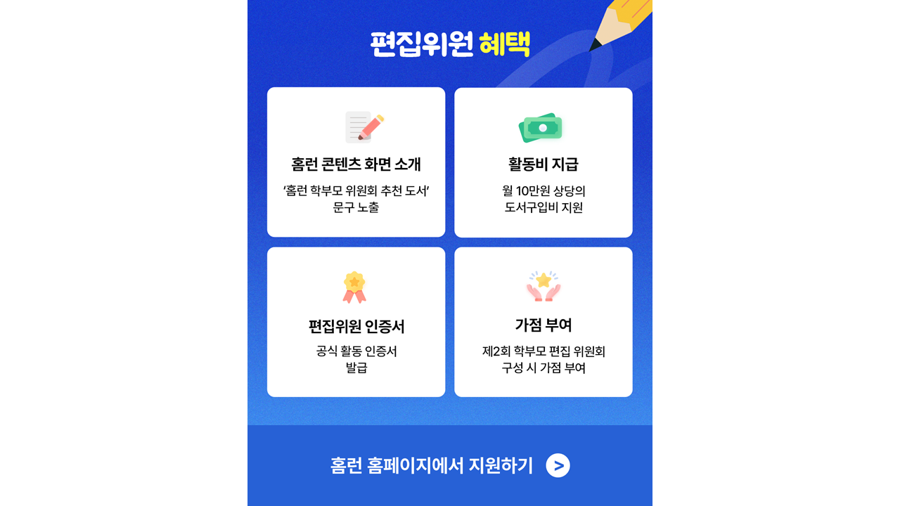 홈런의 학부모 편집위원회는 책을 사랑하고 자녀와 좋은 책을 나누는 분들을 위한 장입니다 아래의 바로가기를 통해 그 의도와 다양한 혜택을 확인하시고 관심과 함께 참여 부탁드립니다.